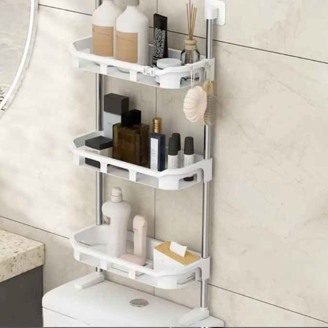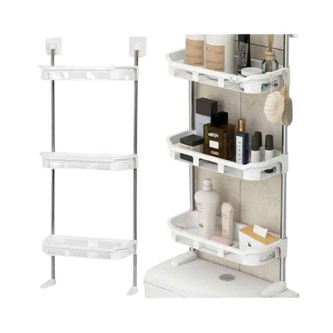 ستاند منظم حمام منظم فوق الحمام 3 دور بلصق دابل فيس هيغير و هينظم شكل حامك مواسير ستانليس و الارفف بلاستيك.