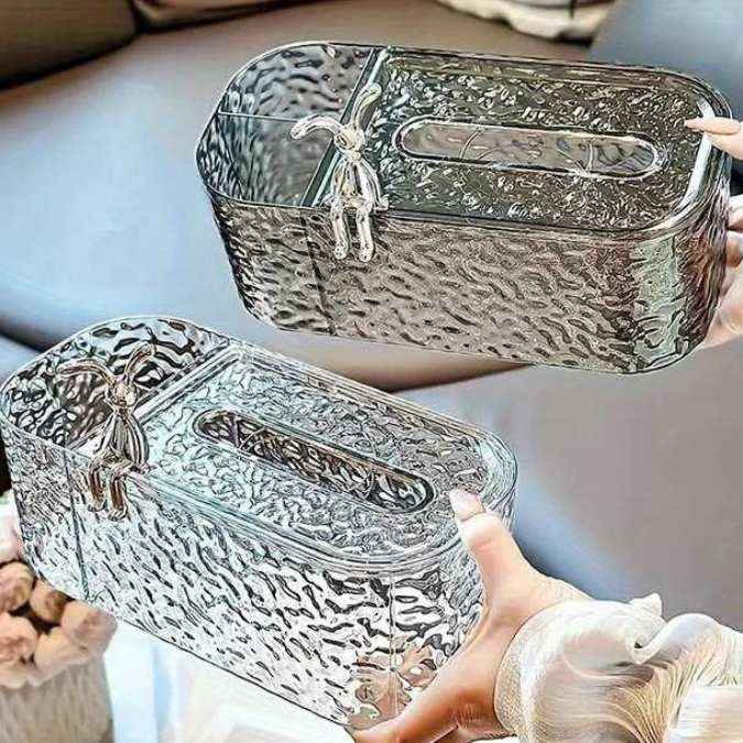 علبة مناديل اكليرك تايواني ارنوب +منظم او خانه للاكسسورات مزوده بسوسته من الداخل